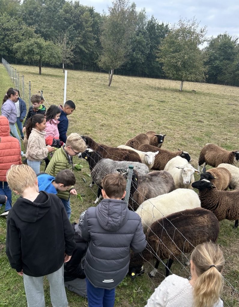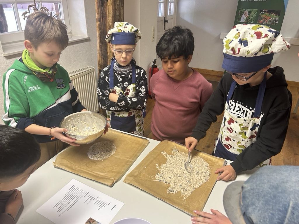 Am 26.09.25 besuchte unsere 3. Klasse den Kossehof und hat im Zuge der Unterrichtsreihe „Getreide“ am Projekt „Vom Korn zum Brot“ teilgenommen. Hier konnten die Kinder Vieles über Getreide – vom Anbau bis zur Ernte – erfahren, aus Körnen ihr eigenes Mehl mahlen und sowohl Brötchen wie auch Fladenbrot und Knäckebrot backen. Während das Brot im Ofen war, folgte ein Rundgang über den Hof. Die Klasse schaute sich die vielen Tiere an – von Schweinen, Schafen bis hin zu Hühnern. Besonders spannend war es, die Tiere aus der Nähe zu füttern und zu streicheln. Es war ein toller Tag, an dem viel über das Leben auf dem Bauernhof gelernt wurde. Vielen Dank an Frau Dirksen von der VHS Meppen und ihr Team! Den Drittklässlern wird der sonnige Vormittag in guter Erinnerung bleiben!