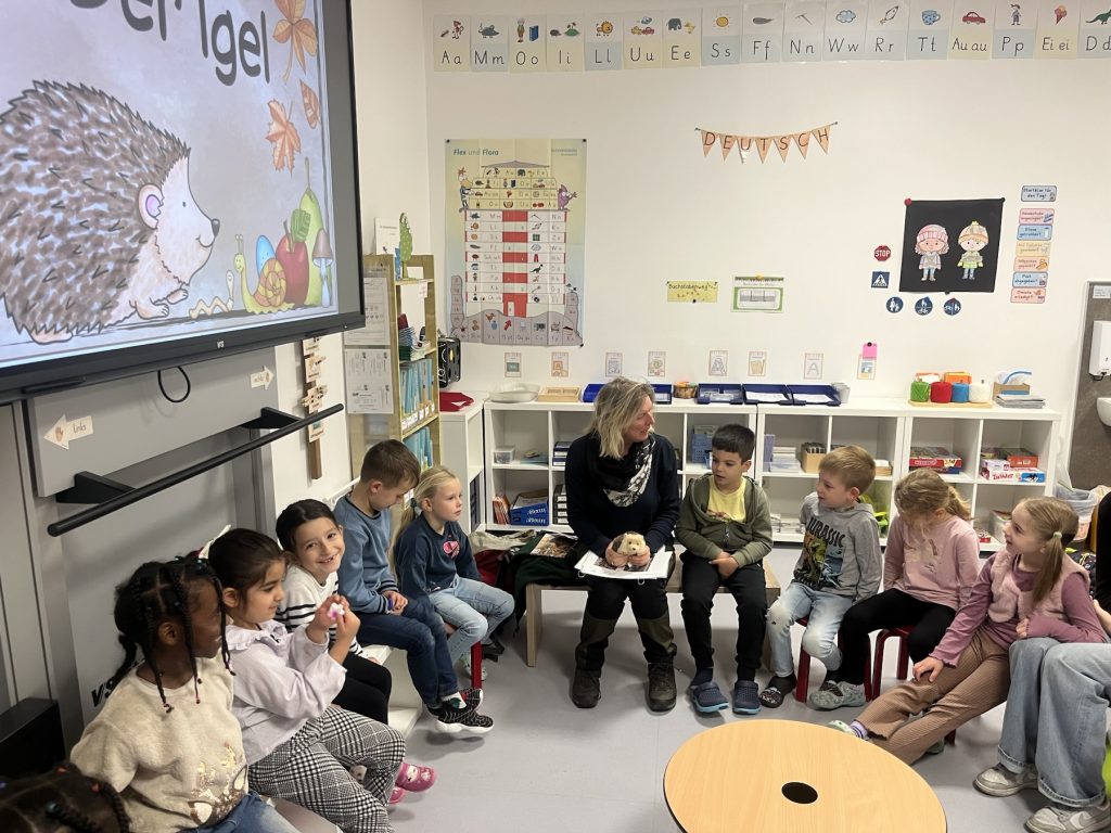Im Rahmen des Sachunterrichts erlebte die Klasse 1 einen ganz besonderen Tag – den Igeltag! Frau Hirndorf, eine Mitarbeiterin des Naturparks Moor-Veenland und Teil des Naturpark-Schul-Teams, besuchte unsere 1. Klasse, um den Kindern spannende Fakten über den Igel zu erzählen. Mit ihrem umfangreichen Wissen brachte sie den Kindern auf anschauliche und unterhaltsame Weise alles rund um das Leben der stacheligen Tiere näher. Die Kinder lernten, wie Igel sich im Herbst auf ihren Winterschlaf vorbereiten und warum sie auf unsere Hilfe angewiesen sind, um gut durch die kalte Jahreszeit zu kommen. Im Anschluss an die tolle Einführung bauten die Kinder unter Anleitung von Frau Hirndorf Unterschlüpfe für die Igel.